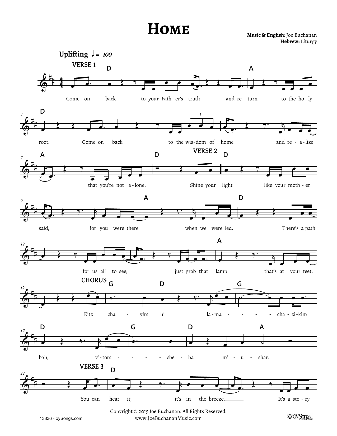 Joe Buchanan "Home" Sheet Music