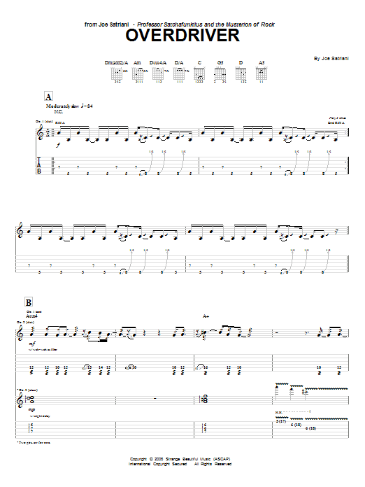 Joe Satriani Overdriver sheet music, chords, lyrics - Printable PDF for Guitar Tab