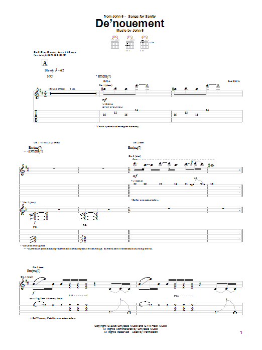 John 5 De'nouement sheet music, chords, lyrics - Printable PDF for Guitar Tab