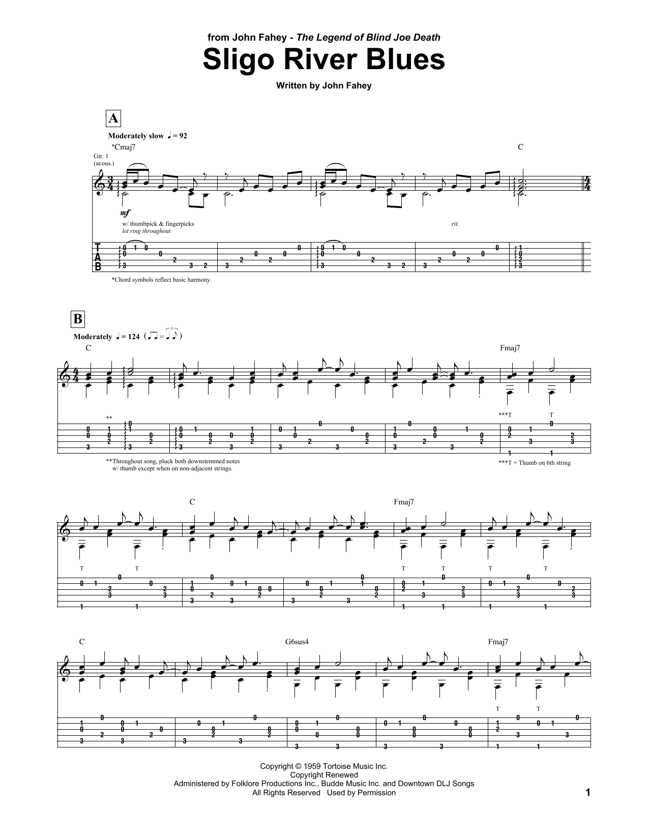 John Fahey Sligo River Blues sheet music, chords, lyrics - Printable PDF for Guitar Tab