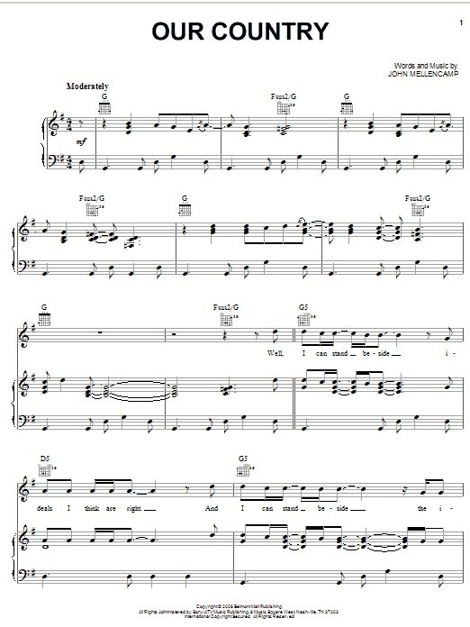 John Mellencamp Our Country sheet music, chords, lyrics - Printable PDF for Piano, Vocal & Guitar (Right-Hand Melody)