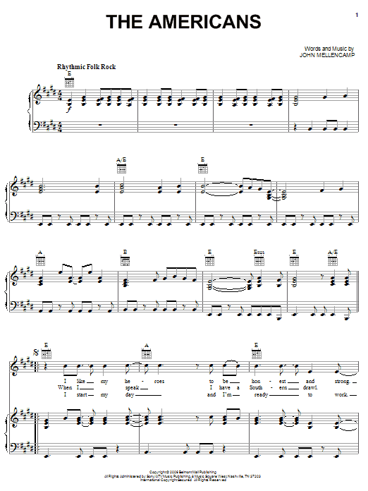 John Mellencamp The Americans sheet music, chords, lyrics - Printable PDF for Piano, Vocal & Guitar (Right-Hand Melody)