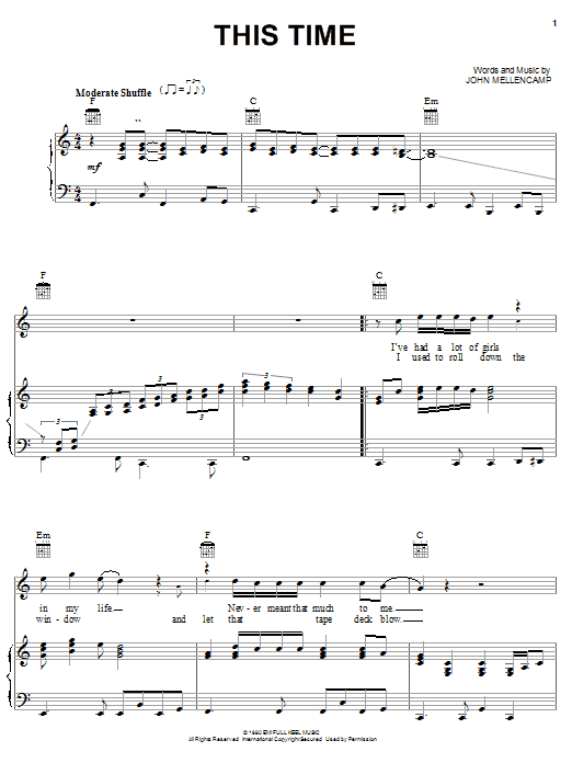John Mellencamp This Time sheet music, chords, lyrics - Printable PDF for Piano, Vocal & Guitar (Right-Hand Melody)