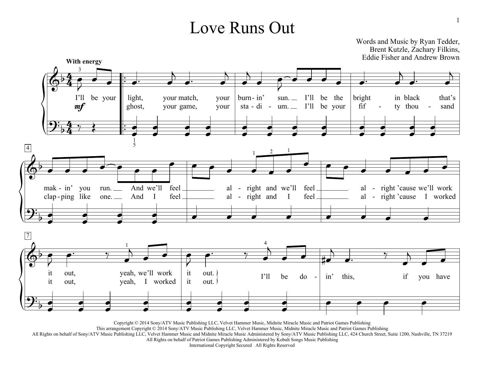 So, go ahead and download Love Runs Out sheet music and start playing this wonderful score in bare minutes.