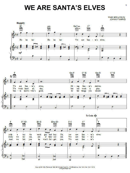 Johnny Marks We Are Santa's Elves sheet music, chords, lyrics - Printable PDF for Piano, Vocal & Guitar (Right-Hand Melody)