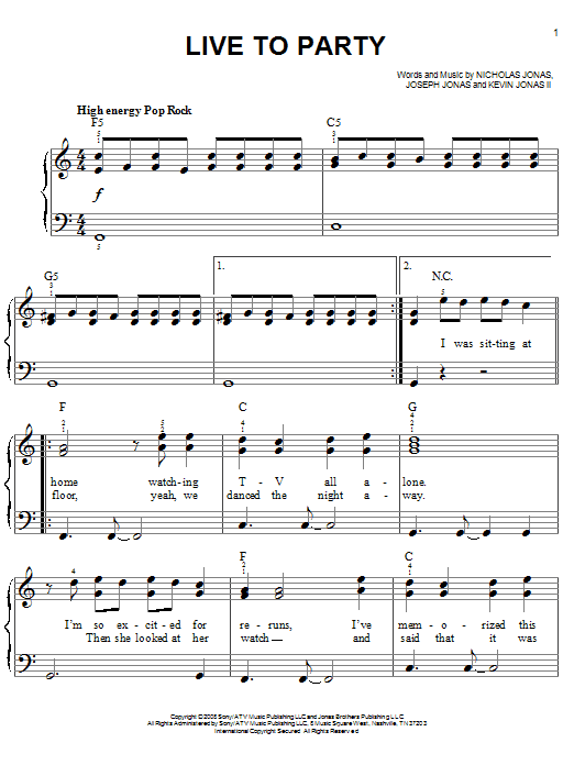 Jonas Brothers Live To Party sheet music, chords, lyrics - Printable PDF for Easy Piano
