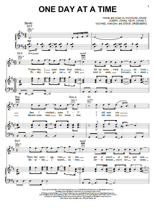 Jonas Brothers "One Day At A Time" Sheet Music