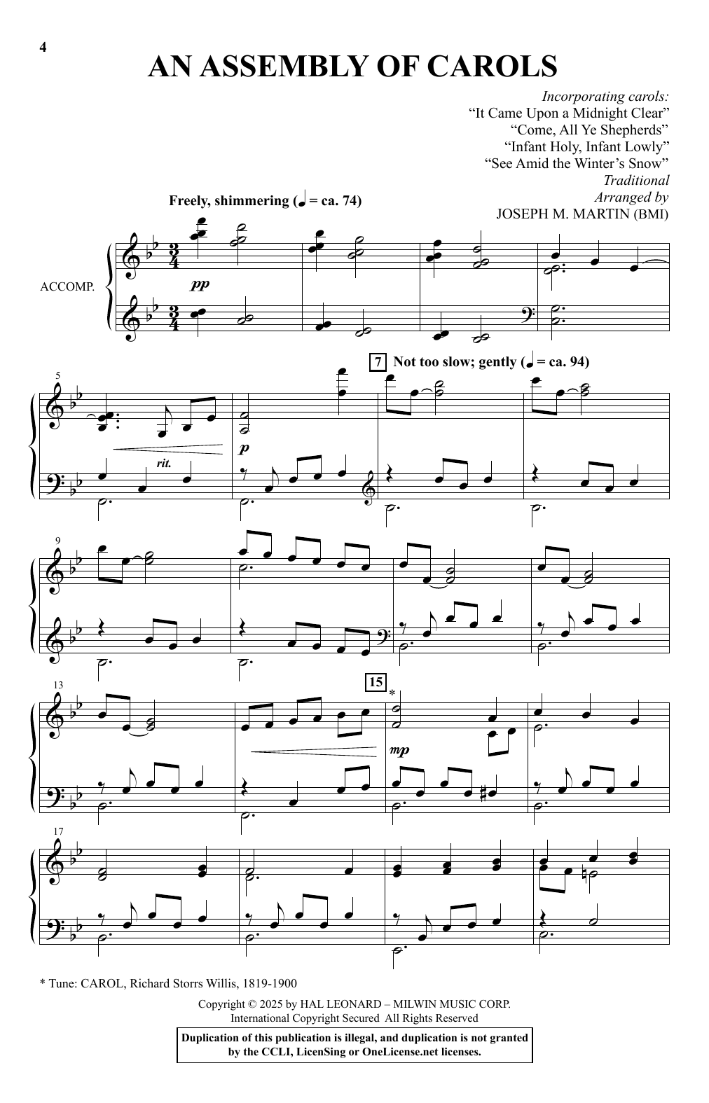 Download Joseph M. Martin An Assembly Of Carols sheet music and printable PDF notes for SATB Choir. This score composition includes 92 page(s). It was wonderfuly put together for the style of Traditional with catalog SKU number of 1767338. Popular song was originally published on 2025-06-05T00:00:00 and was updated on 2025-06-05T00:00:00. The arrangement code for Joseph M. Martin sheet music is SATB and minimum required purchase quantaty of the digital score is 1. Learn more about Joseph M. Martin and click here ».