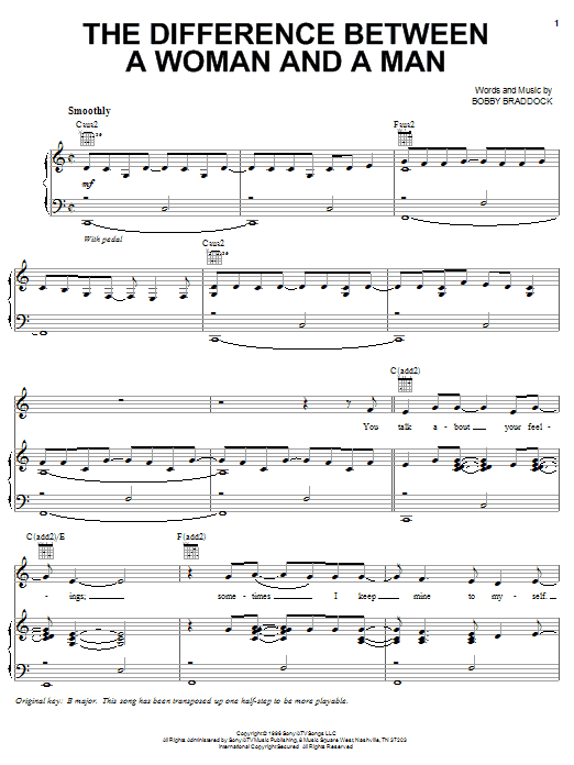 So, go ahead and download The Difference Between A Woman And A Man sheet music and start playing this wonderful score in bare minutes.