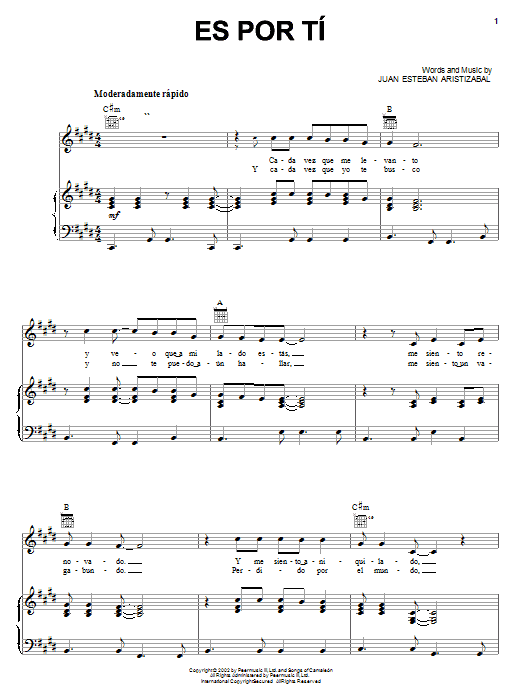 So, go ahead and download Es Por Ti sheet music and start playing this wonderful score in bare minutes.
