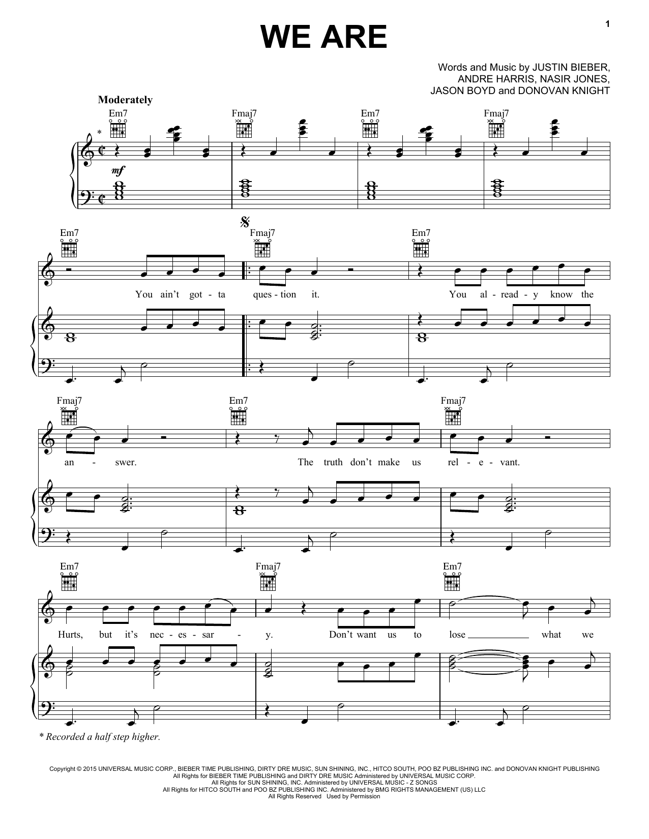 Justin Bieber We Are sheet music, chords, lyrics - Printable PDF for Piano, Vocal & Guitar (Right-Hand Melody)