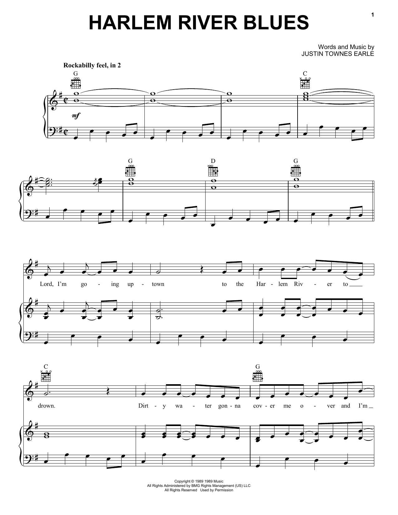 Justin Townes Earle Harlem River Blues sheet music, chords, lyrics - Printable PDF for Piano, Vocal & Guitar (Right-Hand Melody)