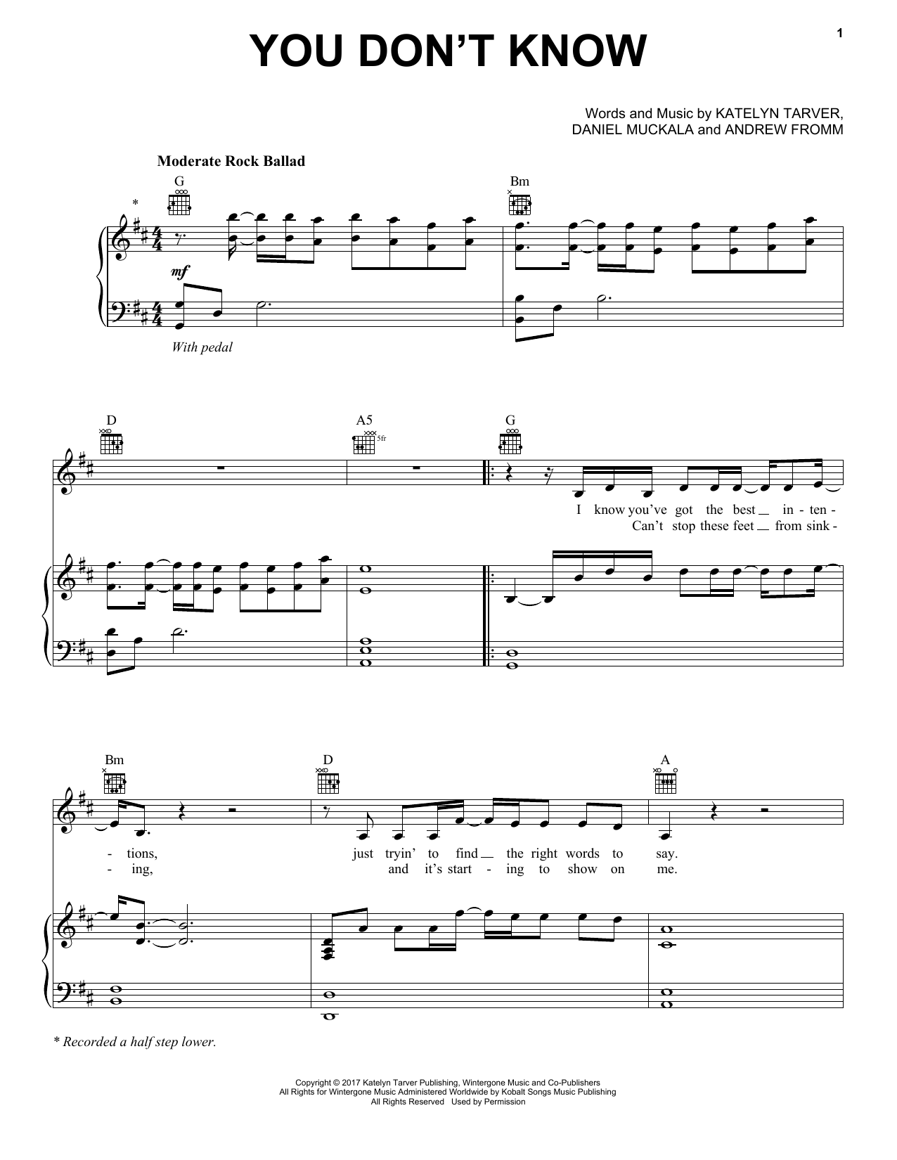 Katelyn Tarver You Don't Know sheet music, chords, lyrics - Printable PDF for Piano, Vocal & Guitar (Right-Hand Melody)