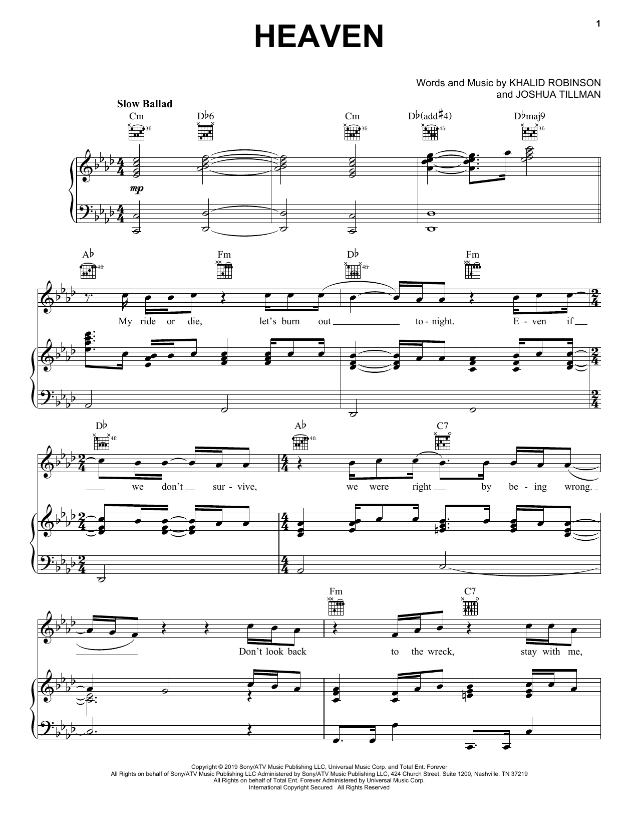 Download 5-Page Khalid Heaven sheet music | Printable PDF Digital Notes