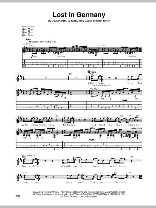 King's X Lost In Germany sheet music, chords, lyrics - Printable PDF for Guitar Tab