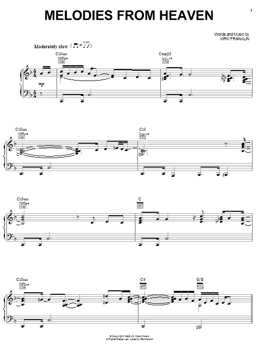 Kirk Franklin Melodies From Heaven sheet music, chords, lyrics - Printable PDF for Piano, Vocal & Guitar (Right-Hand Melody)