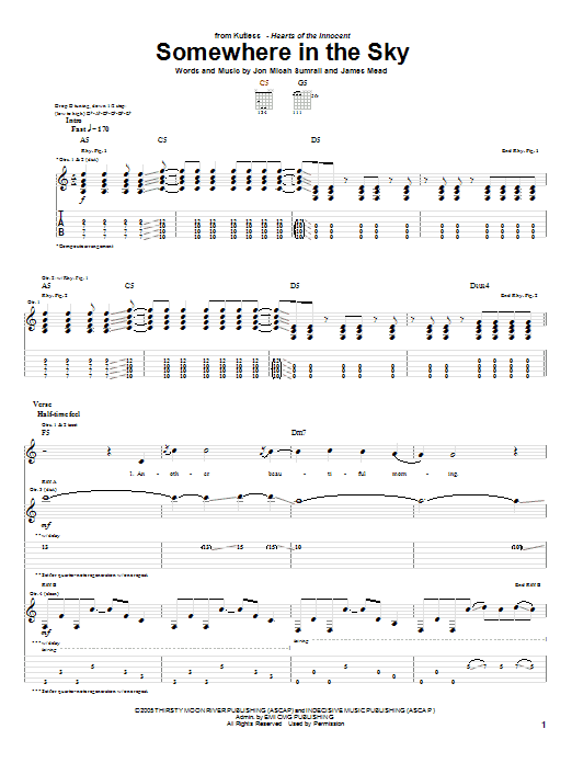Kutless Somewhere In The Sky sheet music, chords, lyrics - Printable PDF for Guitar Tab