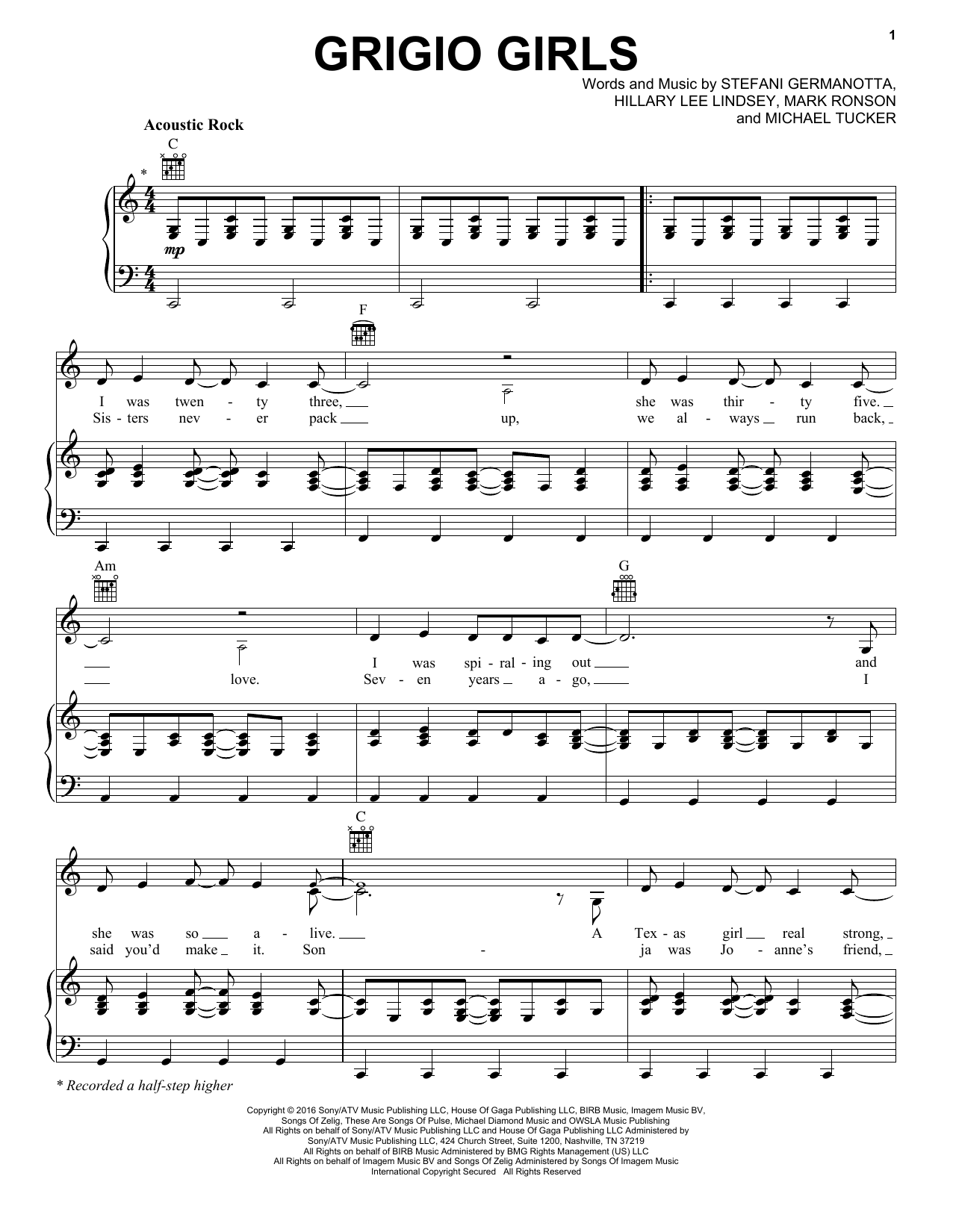 Download 5-Page Lady Gaga Grigio Girls sheet music | Printable PDF Digital Notes