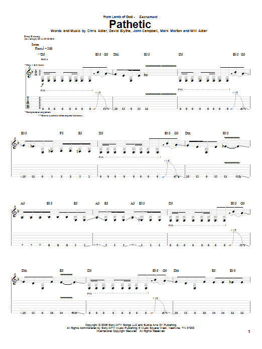 Lamb of God Pathetic sheet music, chords, lyrics - Printable PDF for Guitar Tab