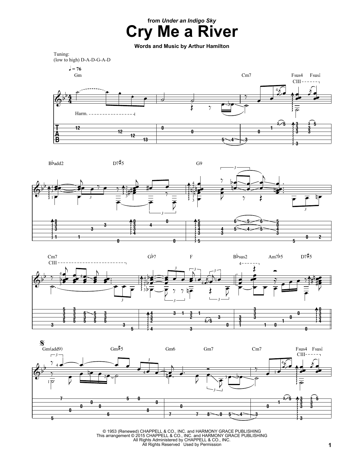 * Please, make sure you check if transposition is possible before your complete your online purchase. You do that by clicking the "notes" icon at the bottom of the interactive viewer. If transposition is available, then various semitones transposition options will appear. If not, the notes icon will remain grayed. Most of our scores are traponsosable, but not all of them.So, check if Laurence Juber Cry Me A River Sheet Music is indeed transposable before completing your online purchase!