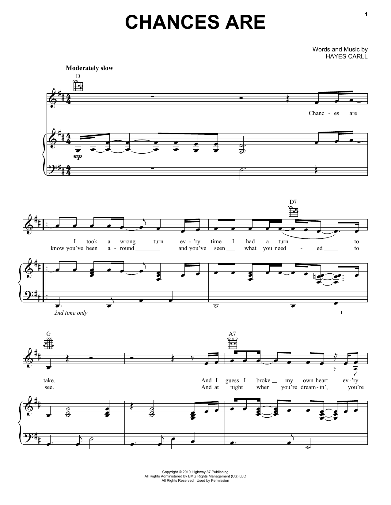 Download Lee Ann Womack Chances Are sheet music and printable PDF notes for Piano, Vocal & Guitar Chords (Right-Hand Melody). This score composition includes 5 page(s). It was wonderfuly put together for the style of Pop with catalog SKU number of 163628. Popular song was originally published on 2016-01-04T00:00:00 and was updated on 2022-07-13T00:00:00. The arrangement code for Lee Ann Womack sheet music is PVGRHM and minimum required purchase quantaty of the digital score is 1. Learn more about Lee Ann Womack and click here ».