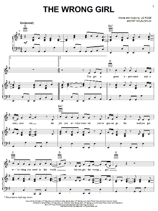 Lee Ann Womack The Wrong Girl sheet music, chords, lyrics - Printable PDF for Piano, Vocal & Guitar (Right-Hand Melody)