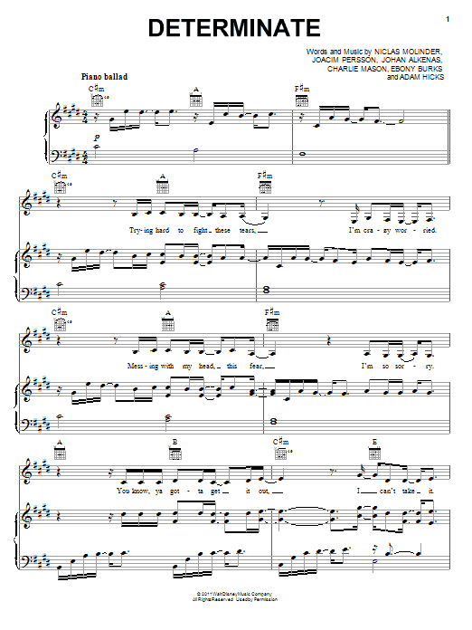 Lemonade Mouth (Movie) Determinate sheet music, chords, lyrics - Printable PDF for Piano, Vocal & Guitar (Right-Hand Melody)