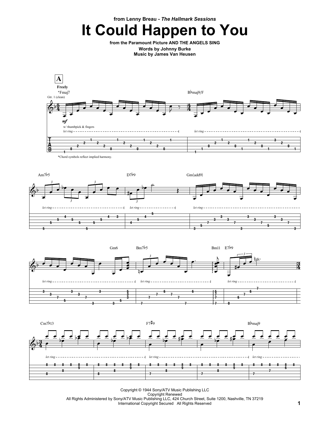 Lenny Breau It Could Happen To You sheet music, chords, lyrics - Printable PDF for Guitar Tab