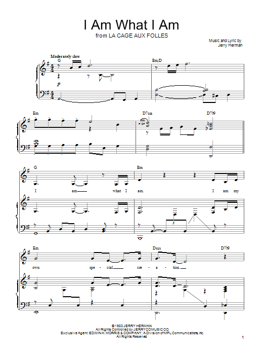 So, go ahead and download I Am What I Am (from La Cage Aux Folles) sheet music and start playing this wonderful score in bare minutes.