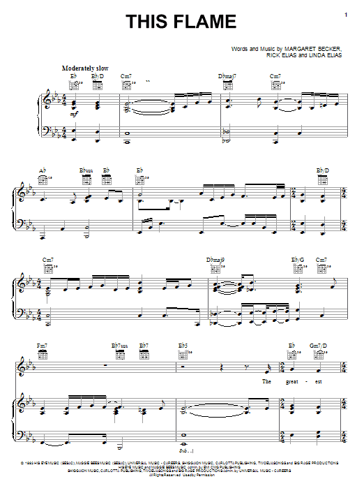 Linda Elias This Flame sheet music, chords, lyrics - Printable PDF for Piano, Vocal & Guitar (Right-Hand Melody)