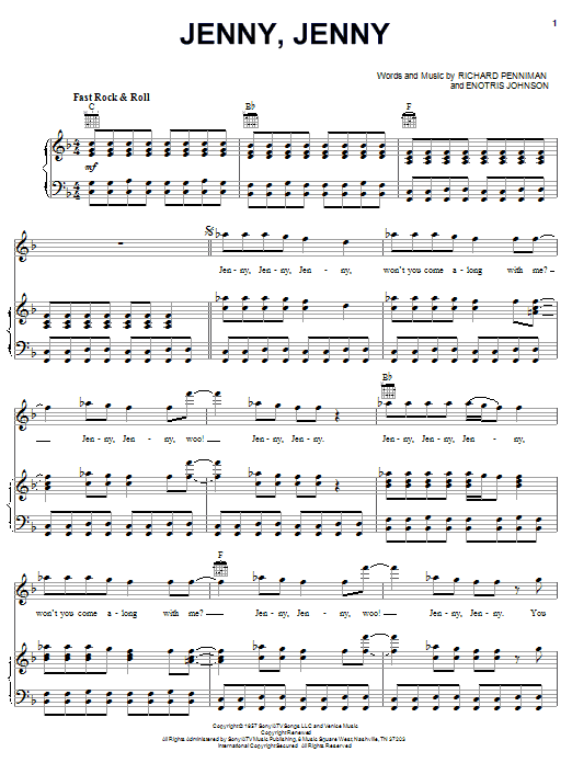 Little Richard Jenny, Jenny sheet music, chords, lyrics - Printable PDF for Piano, Vocal & Guitar (Right-Hand Melody)