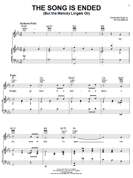 So, go ahead and download The Song Is Ended (But The Melody Lingers On) sheet music and start playing this wonderful score in bare minutes.