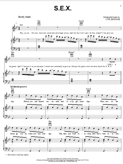 Lyfe Jennings S.E.X. sheet music, chords, lyrics - Printable PDF for Piano, Vocal & Guitar (Right-Hand Melody)