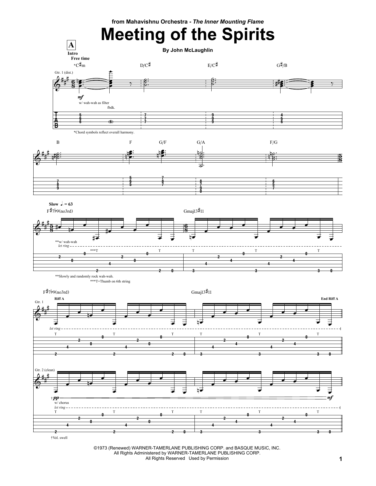Mahavishnu Orchestra Meeting Of The Spirits sheet music, chords, lyrics - Printable PDF for Guitar Tab