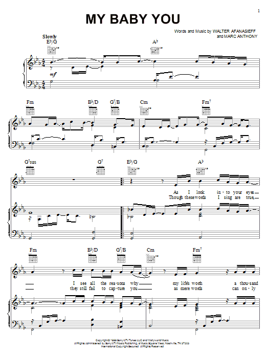 Marc Anthony My Baby You sheet music, chords, lyrics - Printable PDF for Piano, Vocal & Guitar (Right-Hand Melody)