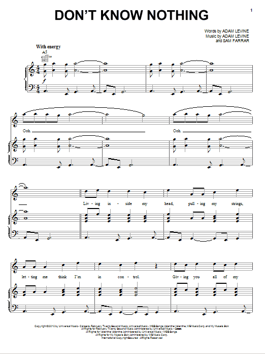 Maroon 5 Don't Know Nothing sheet music, chords, lyrics - Printable PDF for Piano, Vocal & Guitar (Right-Hand Melody)