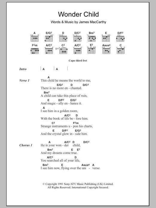 Mary Black Wonder Child sheet music, chords, lyrics - Printable PDF for Lyrics & Chords