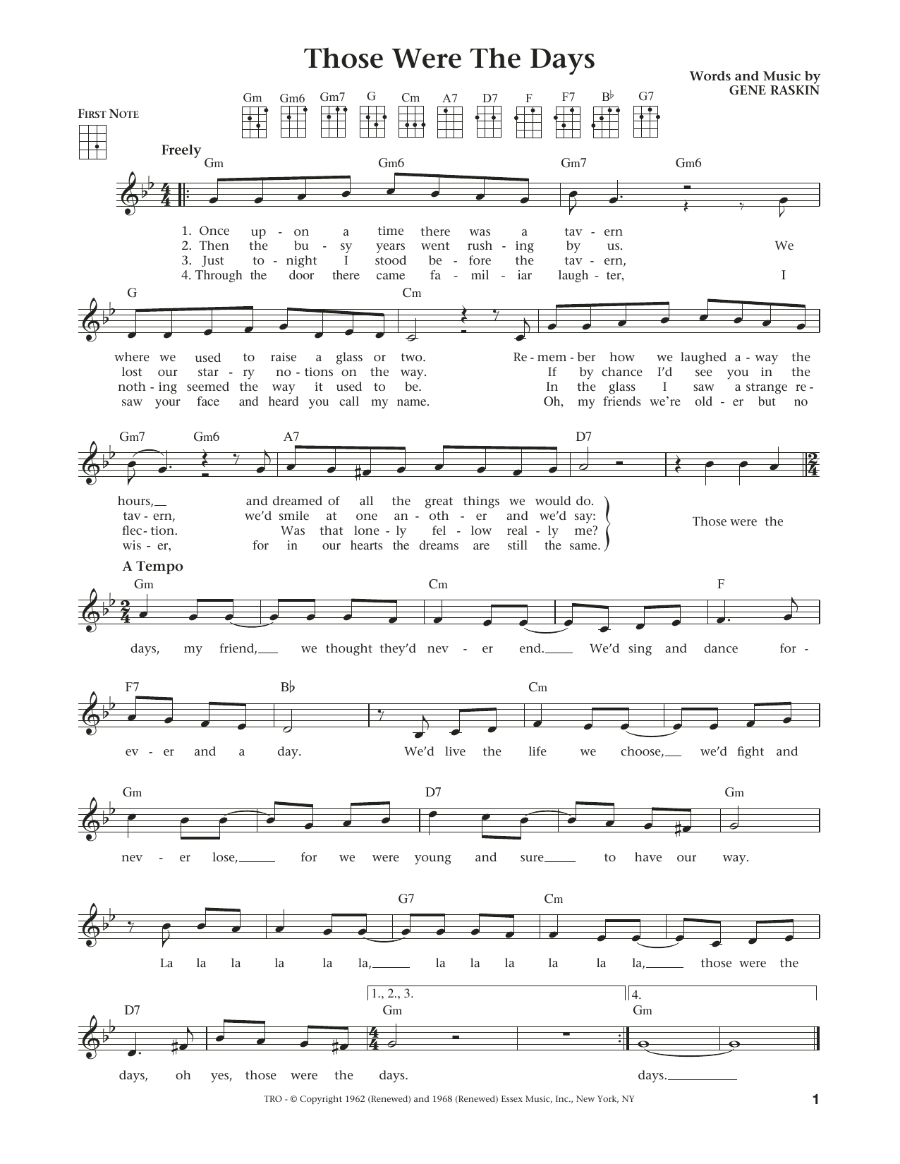 Those Were The Days Sheet Music Sample