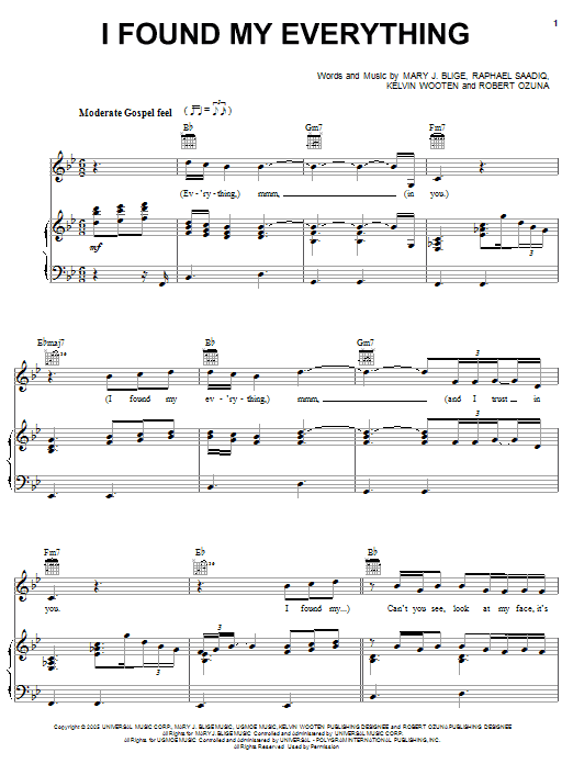 Mary J. Blige I Found My Everything sheet music, chords, lyrics - Printable PDF for Piano, Vocal & Guitar (Right-Hand Melody)