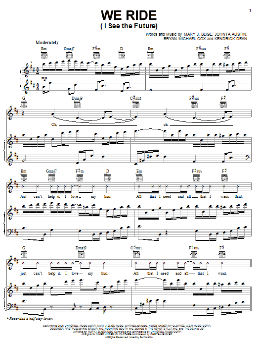 Mary J. Blige We Ride (I See The Future) sheet music, chords, lyrics - Printable PDF for Piano, Vocal & Guitar (Right-Hand Melody)