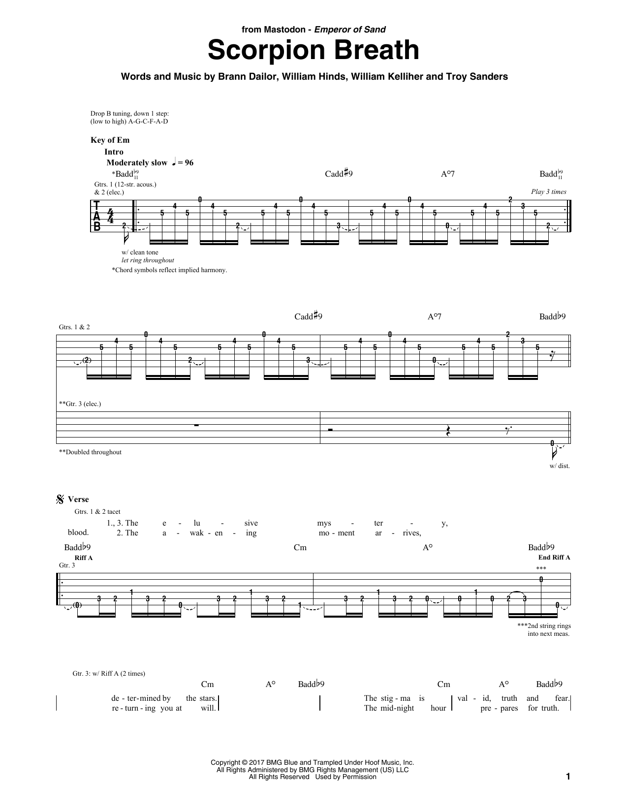Mastodon Scorpion Breath sheet music, chords, lyrics - Printable PDF for Guitar Tab