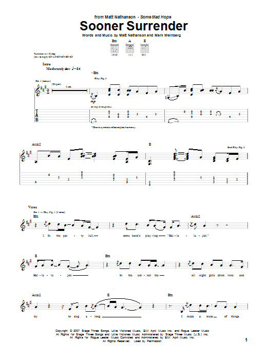 Matt Nathanson "Sooner Surrender" Sheet Music