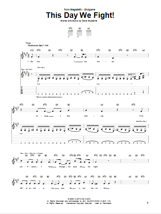 Megadeth This Day We Fight! sheet music, chords, lyrics - Printable PDF for Guitar Tab