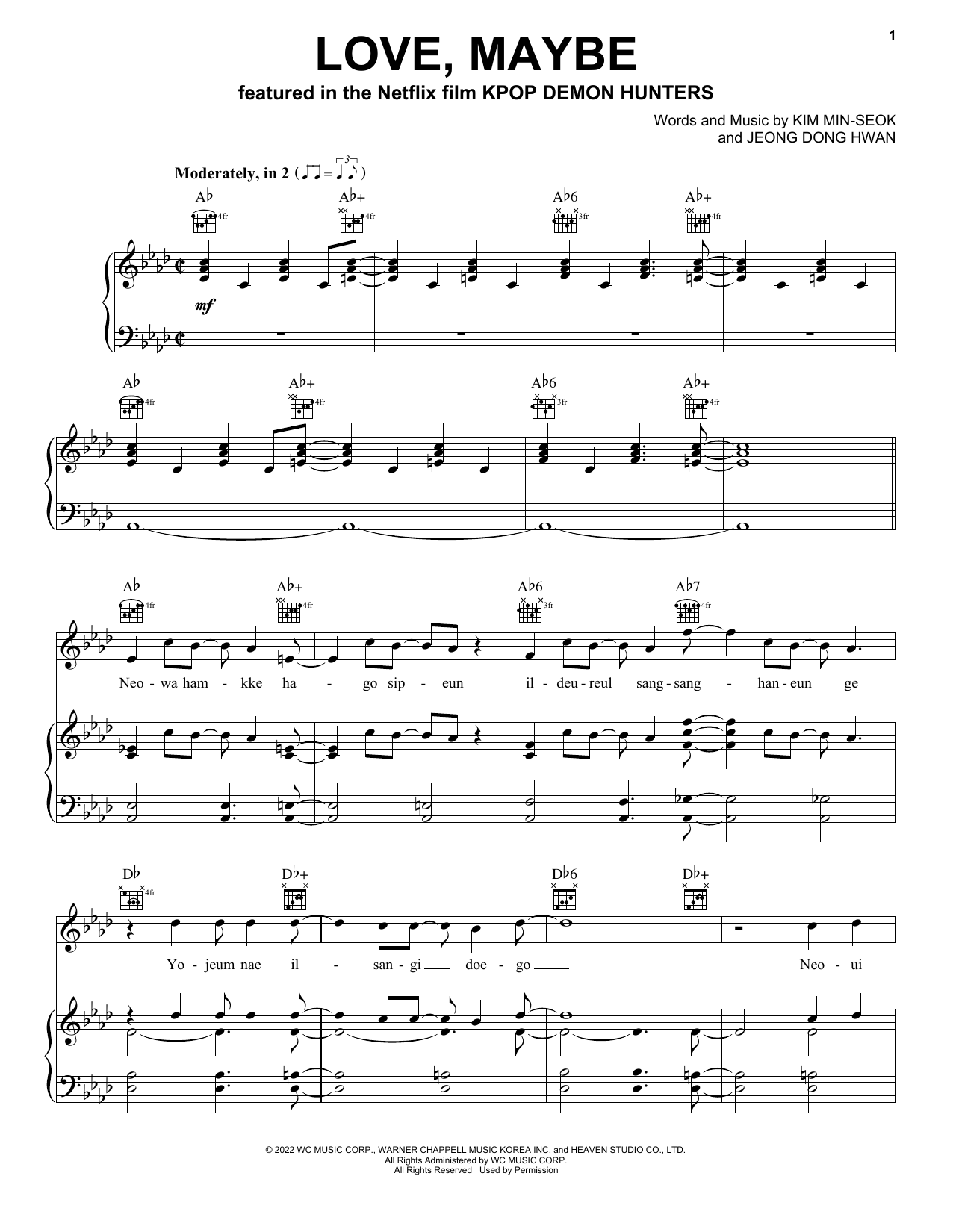 So, go ahead and download Love, Maybe (from KPop Demon Hunters) sheet music and start playing this wonderful score in bare minutes.