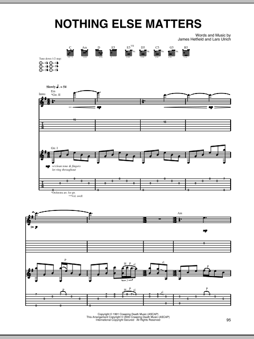 Metallica Nothing Else Matters sheet music, chords, lyrics - Printable PDF for Guitar Tab