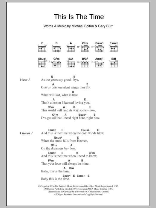 Michael Bolton This Is The Time sheet music, chords, lyrics - Printable PDF for Lyrics & Chords