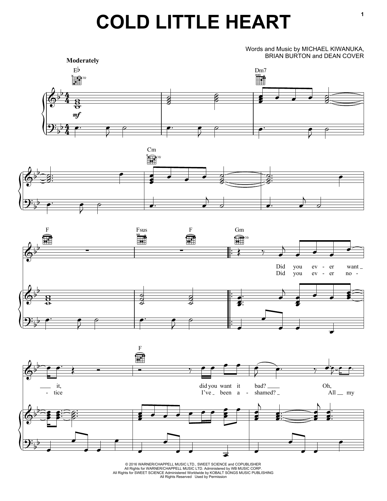 Michael Kiwanuka Cold Little Heart (theme from Big Little Lies) sheet music, chords, lyrics - Printable PDF for Piano, Vocal & Guitar (Right-Hand Melody)