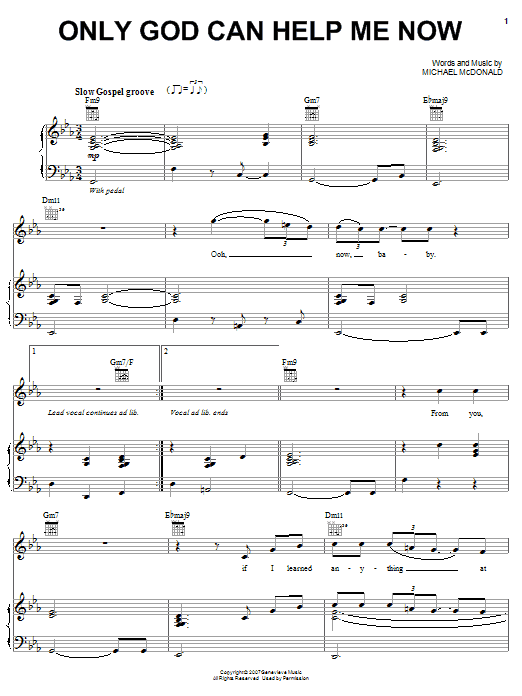 Michael McDonald Only God Can Help Me Now sheet music, chords, lyrics - Printable PDF for Piano, Vocal & Guitar (Right-Hand Melody)