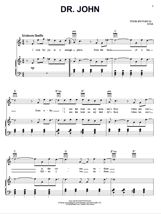 Mika Dr. John sheet music, chords, lyrics - Printable PDF for Piano, Vocal & Guitar (Right-Hand Melody)