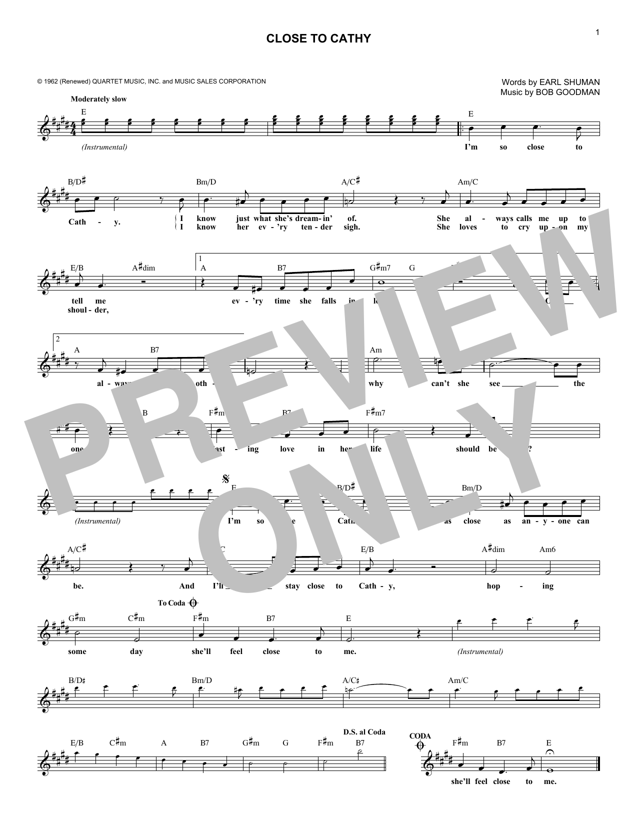 Close To Cathy Sheet Music Sample